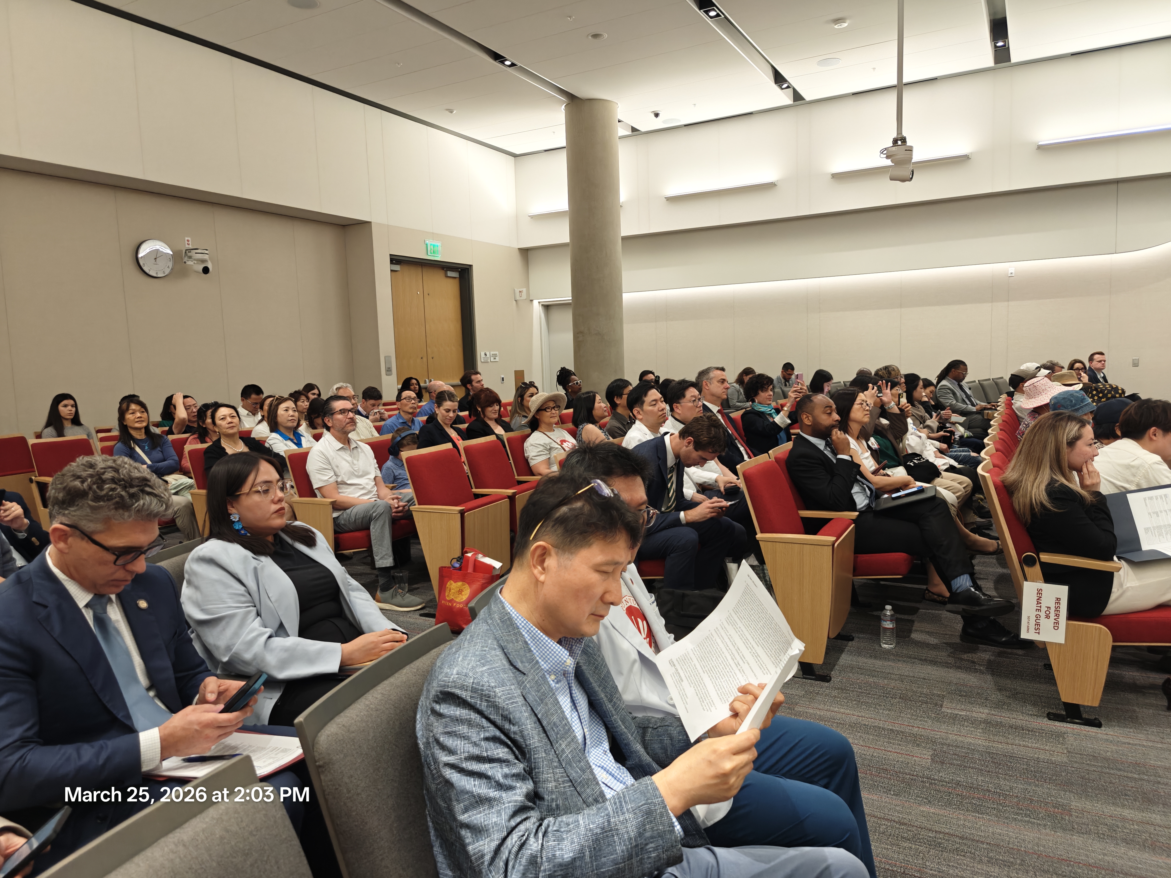 美国中医公会、加州针灸联盟CAC、其他针灸团体、针灸院校、东北医疗中心的医师、师生和亲友及一些针灸病人数十人参加了今天由州参议院卫生委员会举行的听证会,并纷纷发言表示支持SB 944。州众议员李天明Alex Lee , Santa Clara 县长李晓洲也亲自到场支持。