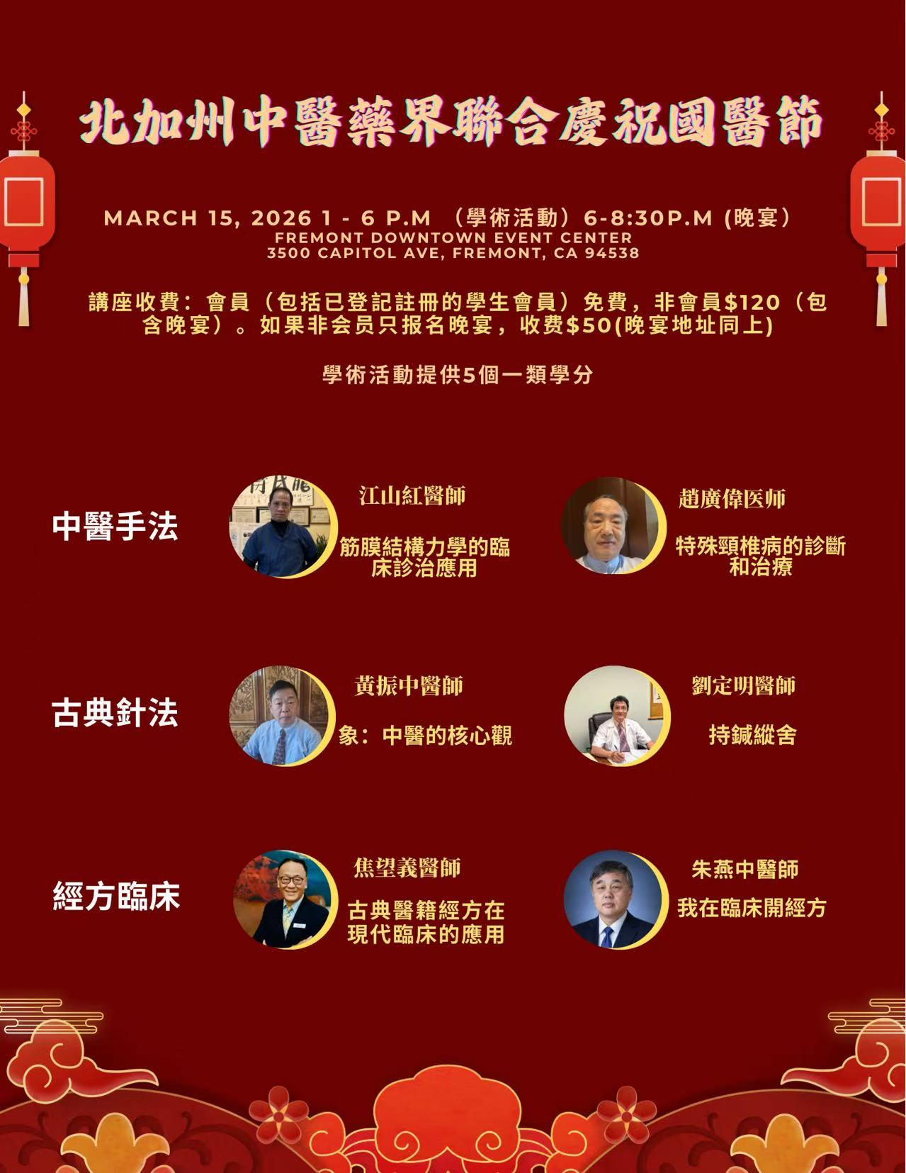 3/15/2026年北加州中醫藥界聯合慶祝國醫節 美国中医公会 继续教育学术讲座